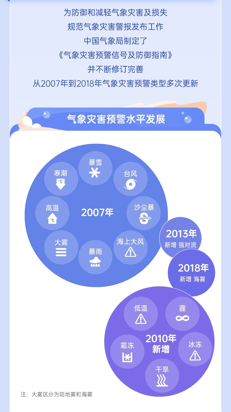 2018年12月,在大雾气象灾害预警中新增了海雾预警发布办法。