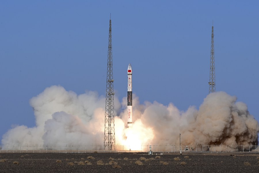 Satellites belonging to the Tianmu-1 meteorological constellation are launched by a Kuaizhou-1A carrier rocket from the Jiuquan Satellite Launch Center in northwest China, March 22, 2023. (Photo by Wang Jiangbo/Xinhua)
